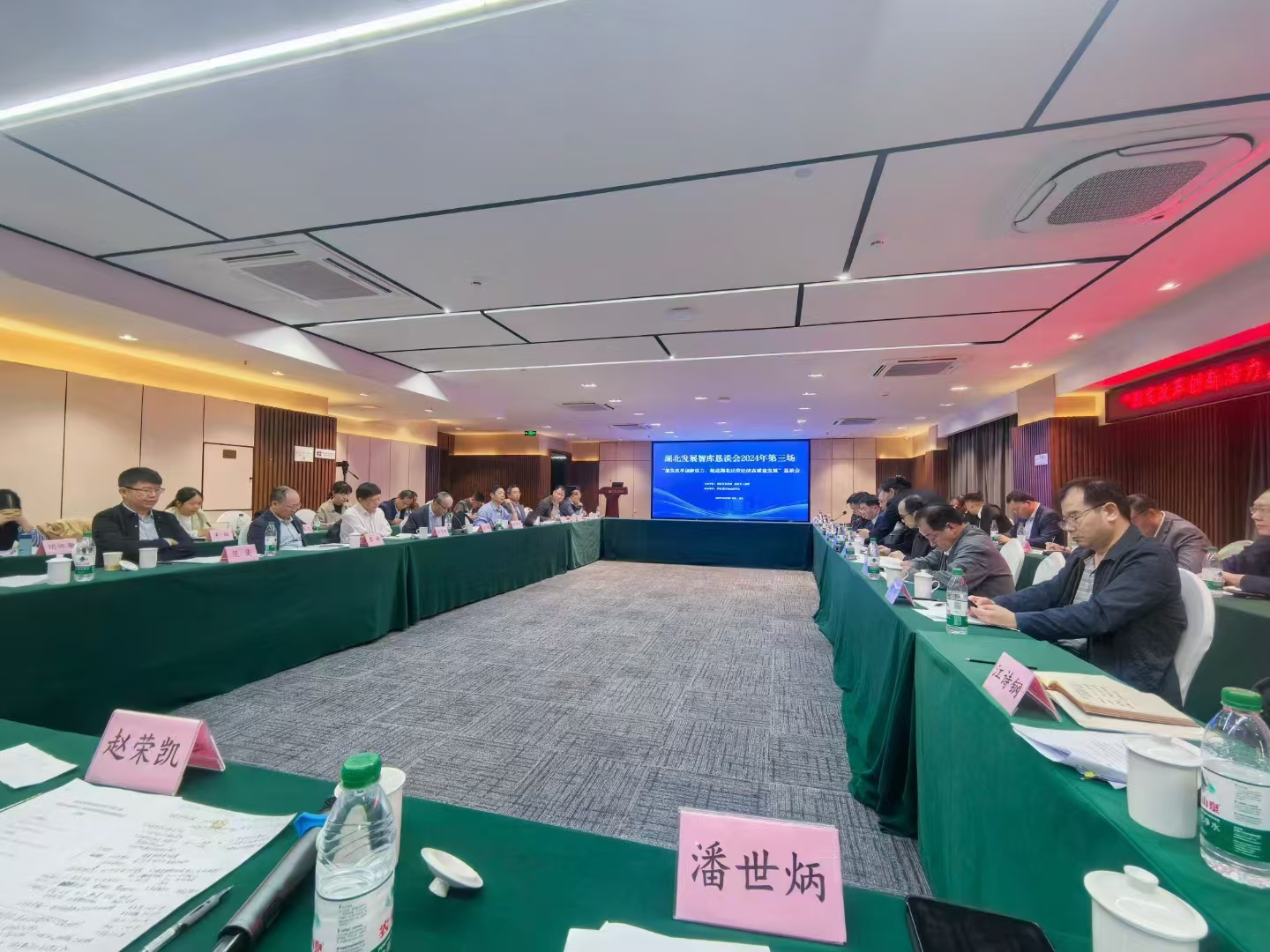 2024年10月20日,湖北发展智库恳谈会2024年第三场——“激发改革创新活力,促进我省民营经济高质量发展”恳谈会在武汉召开。省社科联党组书记、常务副主席刘爱国,省政府研究室党组成员、副主任黄良港出席会议并讲话。省政府参事、永业行董事长潘世炳参加会议并作《聚焦绿色转型升级 激发民营经济发展》主题发言。