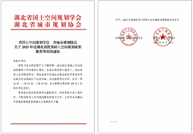 永业行荣获2025年度湖北省优秀国土空间规划成果二等奖、三等奖